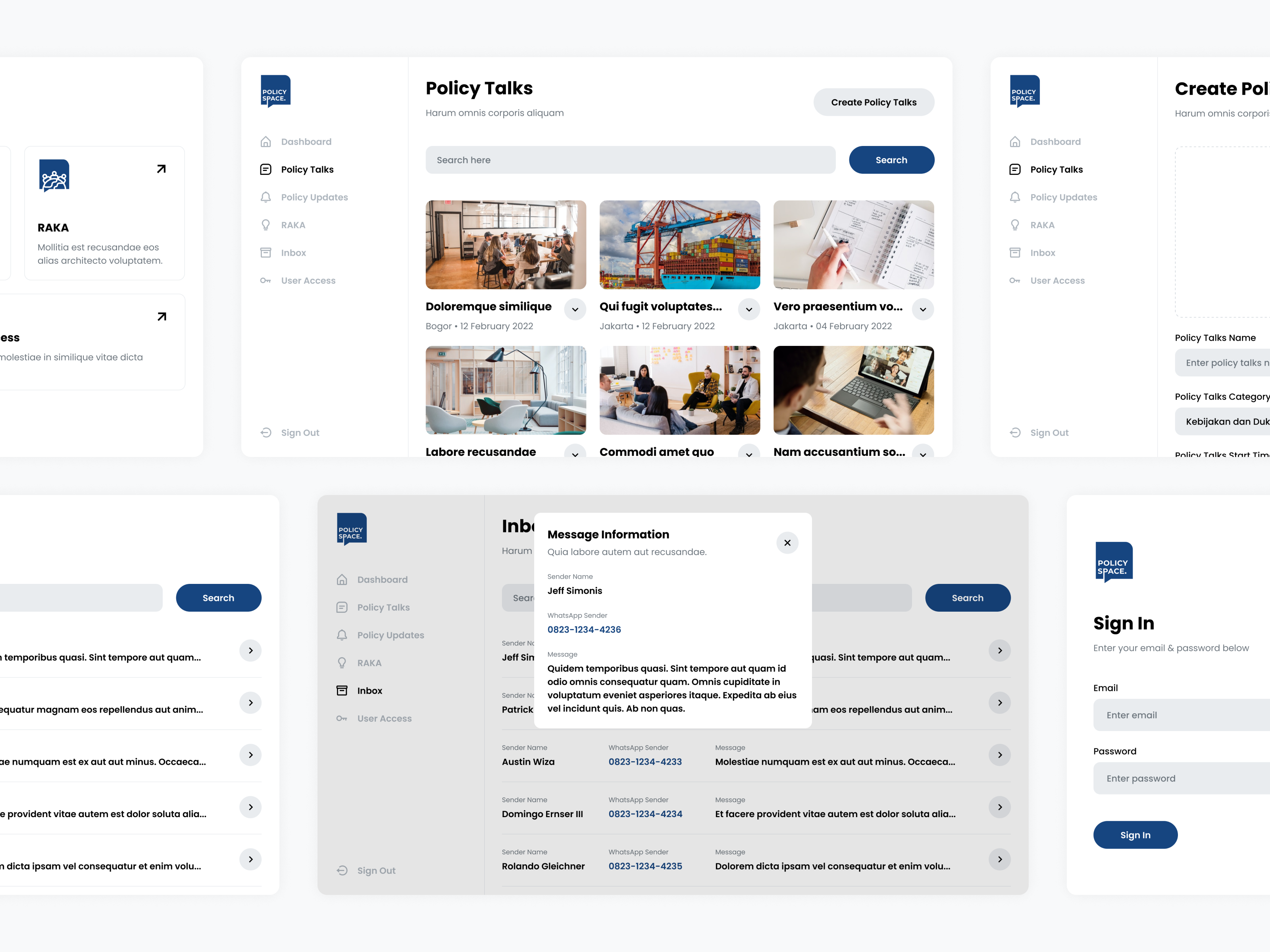 There are several main features in the Policy Space, including Policy Talks, Policy Updates, and RAKA. Policy Talks contain information about webinars or workshops held by Policy Space. Creating an event takes time, when and where the event will be held, who is the performer, and what the benefits for the participants if they take part in the event.